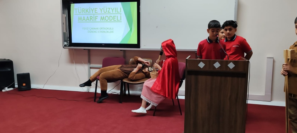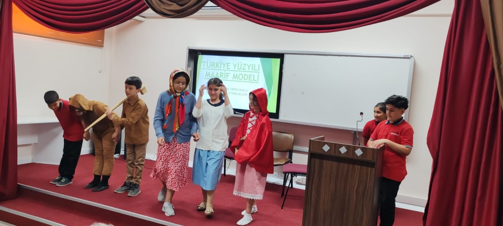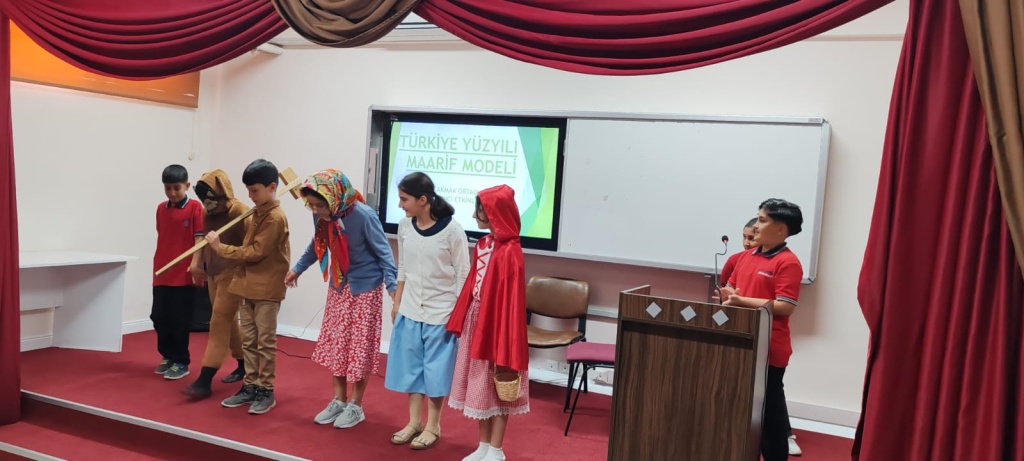 Yabancı Dil Ağırlıklı eğitim modeli kapsamında pilot uygulama okulu olarak sene sonu ingilizce etkinlikleri kapsamında 5.sınıf öğrencilerimiz ingilizce tiyatro oyunu sergilediler. Etkinlikler kapsamında izgilizce şarkı söyleyen öğrencilerimiz katılan misafirlerimize eğlenceki anlar yaşattı.